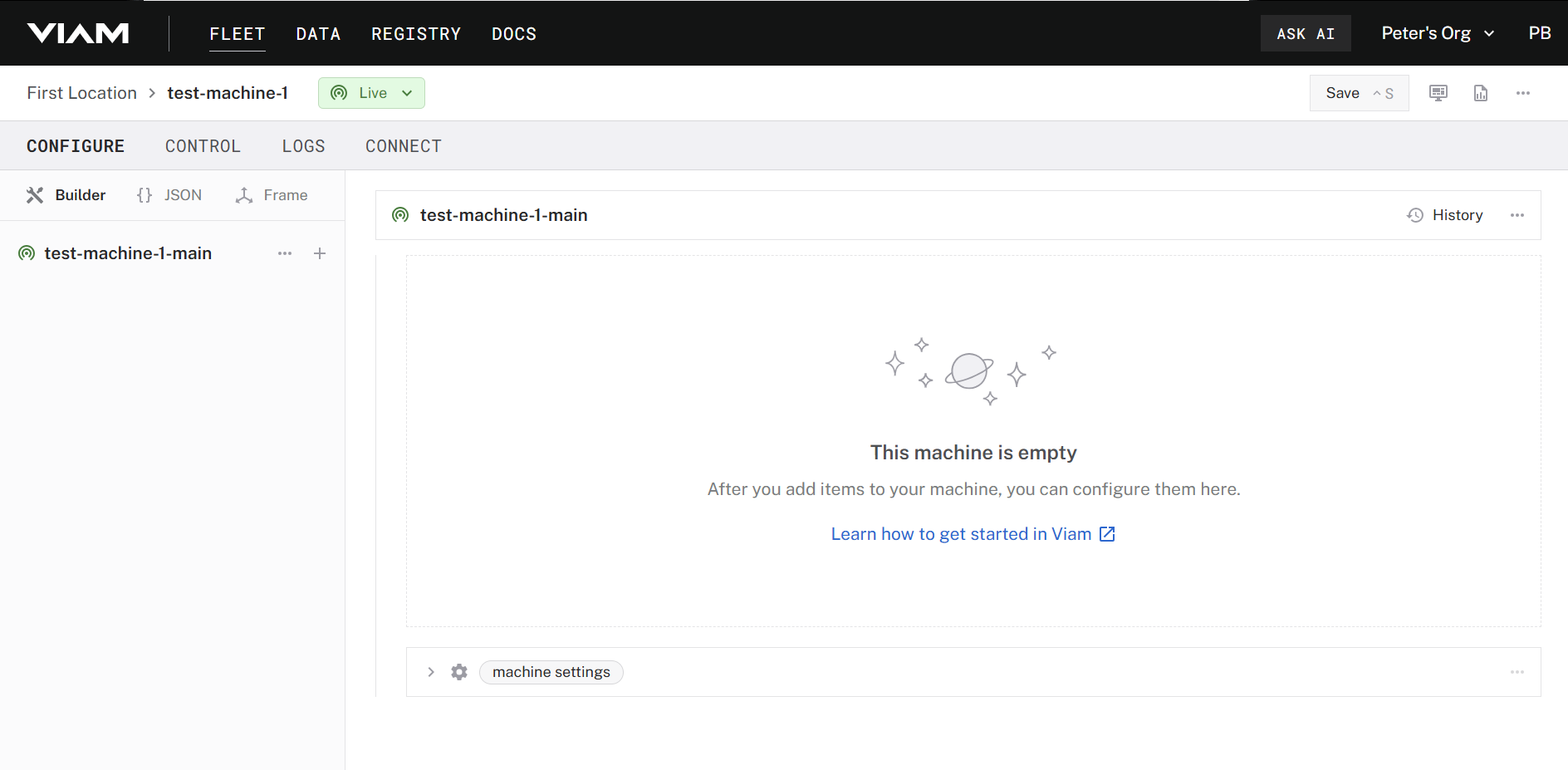 To leverage the full power of Viam’s ecosystem of products, from data aggregation, machine learning models, and a registry of compliant components, users need a way to efficiently configure and test their new smart machines. Machine configuration acts as the core of the VIAM platform which other product services such as Fleet Management, Data, Machine Learning, & Registry derive their ecosystem level value from.